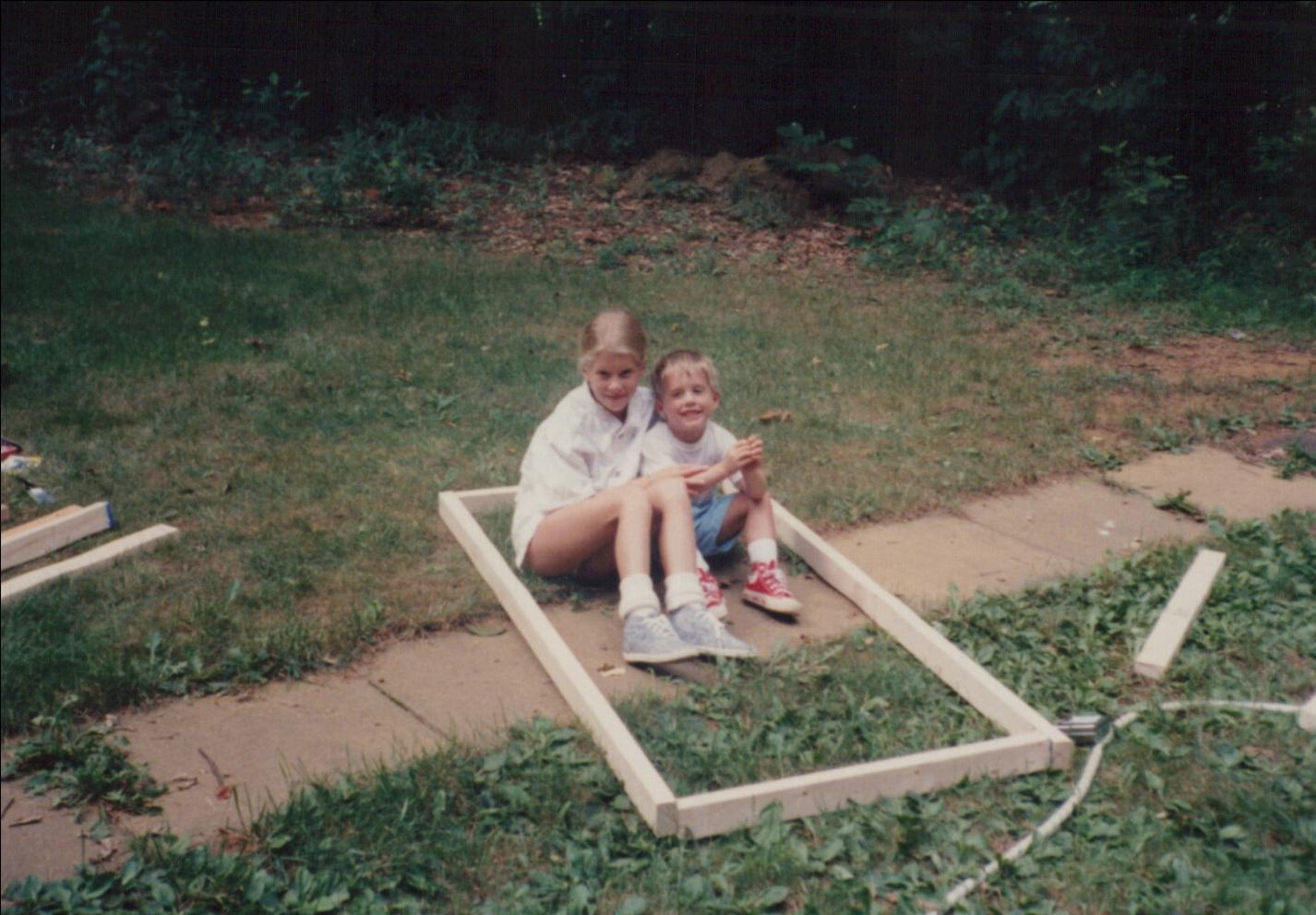 I hope we can help the Rocker and Aunt Kiki build a sandbox for the Twins. Right now, not quite 11 months, they will try to eat the sand; but soon they will learn how to dig and sculpt the sand and share their toys. I hope they will not learn the word “MINE” too soon. This is the Bride and the Rocker helping us build their sandbox around 1986.