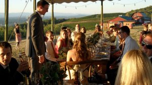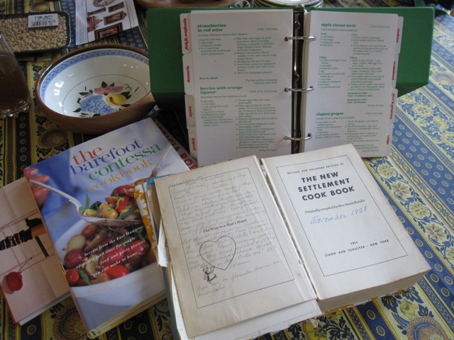 A year ago the weather suddenly changed, the drenching humidity blew away and the sun was shining on the new couple. We celebrated their marriage under a tent in an apple orchard. This is what it says on my Mother’s 1954 New Settlement cookbook – “The Way to a Man’s Heart.”