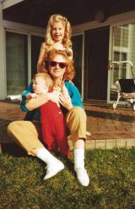 Barbie appeared in 1959 so I was immune to her wily ways. Plus I was a tomboy, when being a tomboy was something to be proud of…I even punched a mean boy in the face with my ice cream cone once. Notice the red Wayfarers and sexy white popcorn socks on this young Mom in her kid totem!