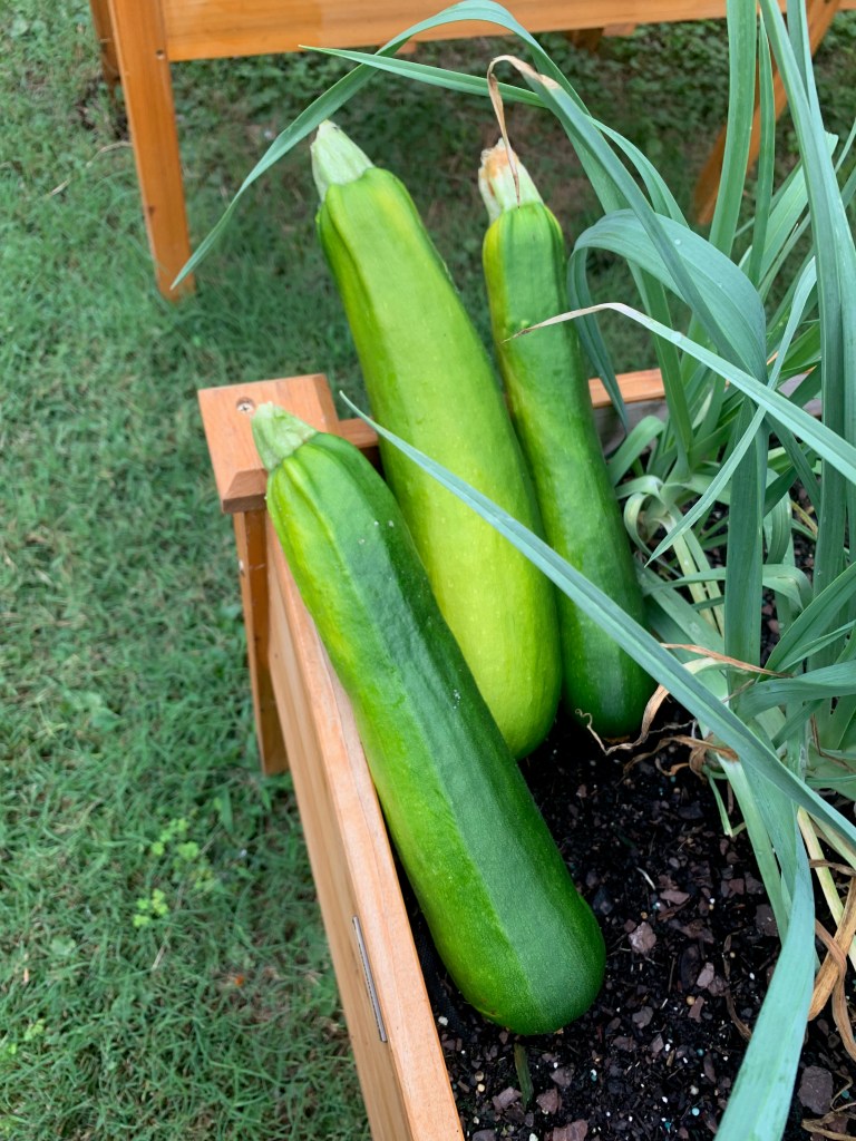 While making myself another cup of coffee, and wondering why more girls don’t faint in the pool from oxygen deprivation, I decided it was time to tackle the abundance of zucchini Farmer Bob has harvested. I returned from California to three very large zucchini on our kitchen island. I delivered one to the Bride and one to Les – what to do with the third? The Rocker turned me onto the NYTCooking app and lo and behold I found a new and different recipe for zucchini bread! It’s a tad healthier, made with olive oil and just a little brown sugar. I had to add chocolate chips of course.